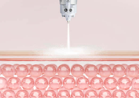 キュアジェット治療は、航空宇宙工学の原理を応用した、針を使わない画期的な肌再生治療です。高圧な空気圧(エアジェット)の力を利用し、皮膚に負担をかけずに肌の奥深くへアプローチします。