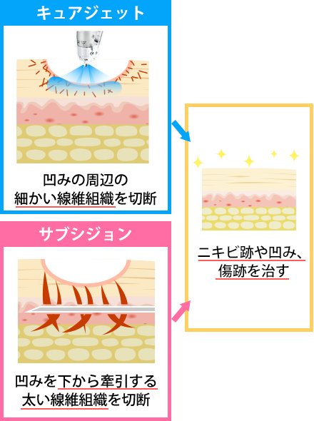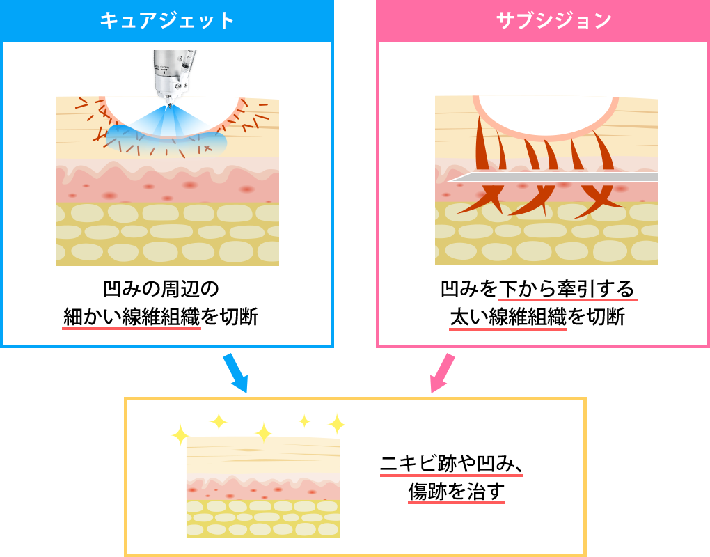 - 浅い凹み・複合的な肌質改善: キュアジェット(マイクロサブシジョン)